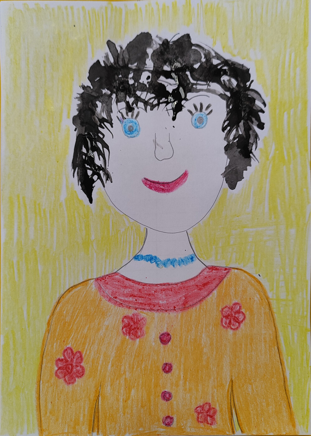 Работа выполнена карандашом и техникой кляксография