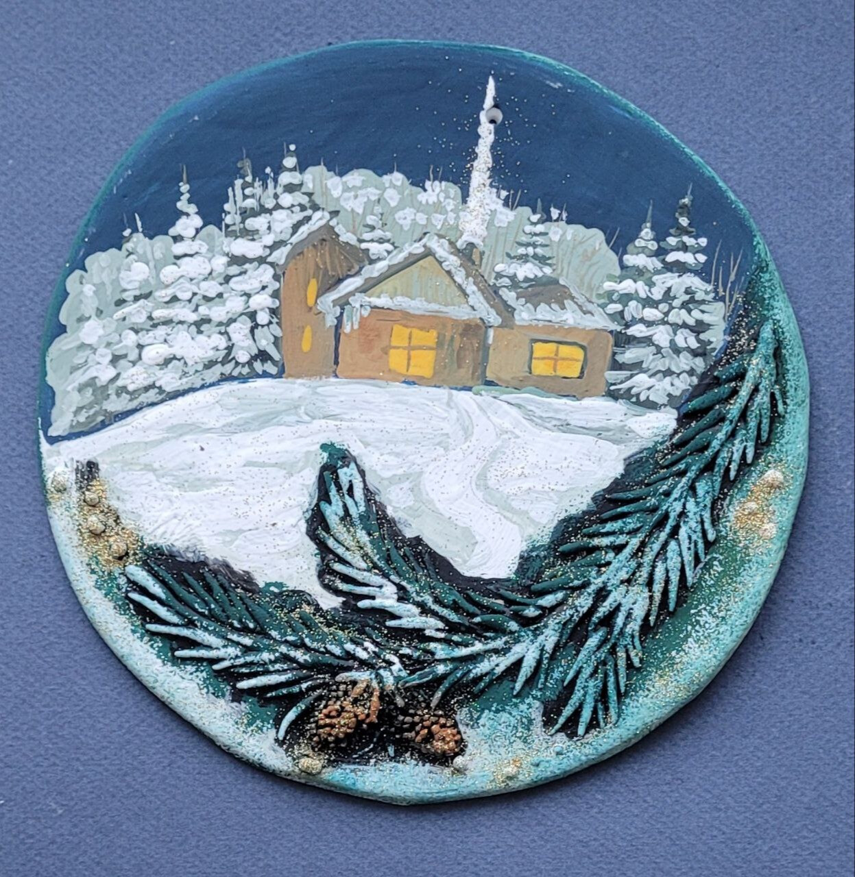 Работа "Зимний вечер" выполнена мною в технике керамика. Роспись сделана акриловыми красками. Поделка олицетворяет красоту русской зимы и её загадочную атмосферу.