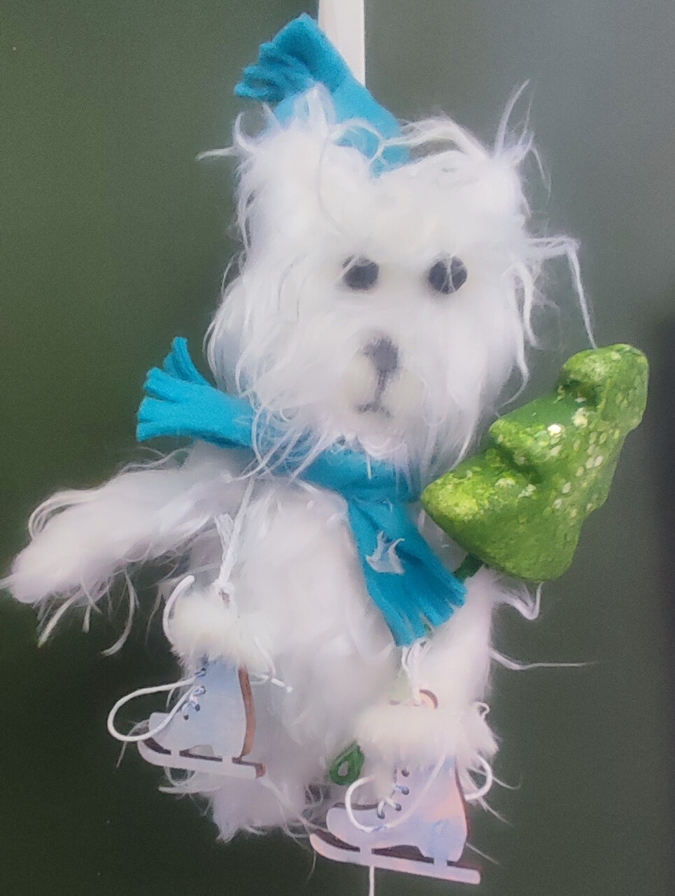 Выполнено из шерстяной нити, затем сформирована шапка из шерстяной ткани и сшита шапка, пришиты пуговицы в виде глаз.