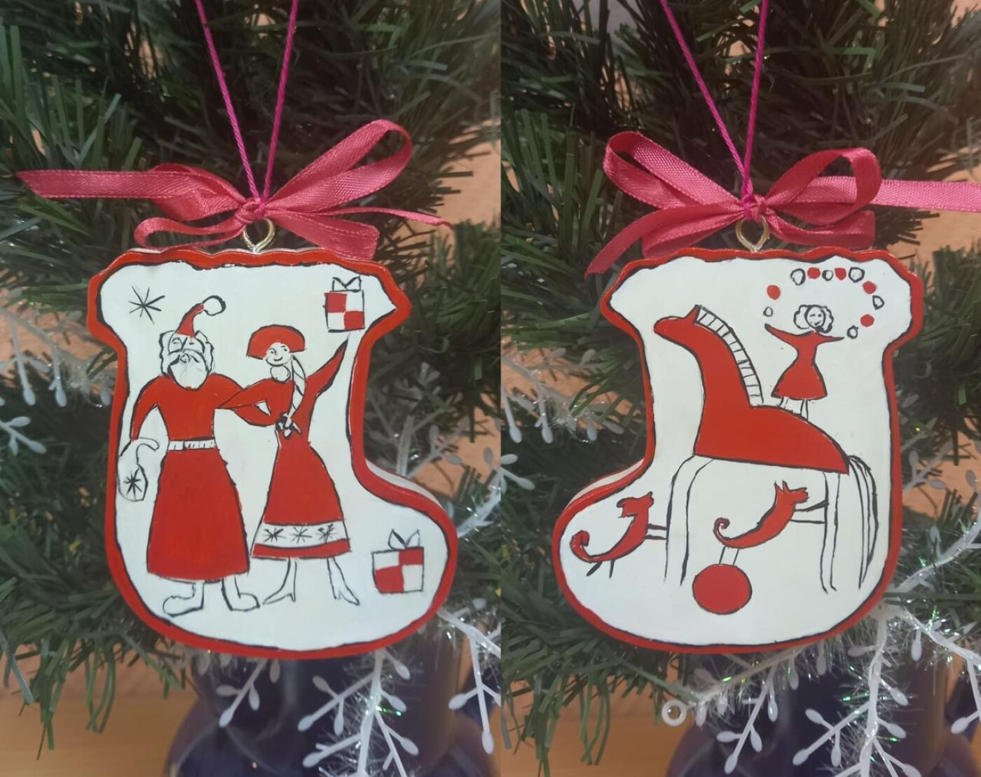 Круглова Яна, 10 лет, работа выполнена темперой и гуашью, по деревянной заготовка, размером 10*2 см. Творческая композиция по мотивам Мезенской росписи.