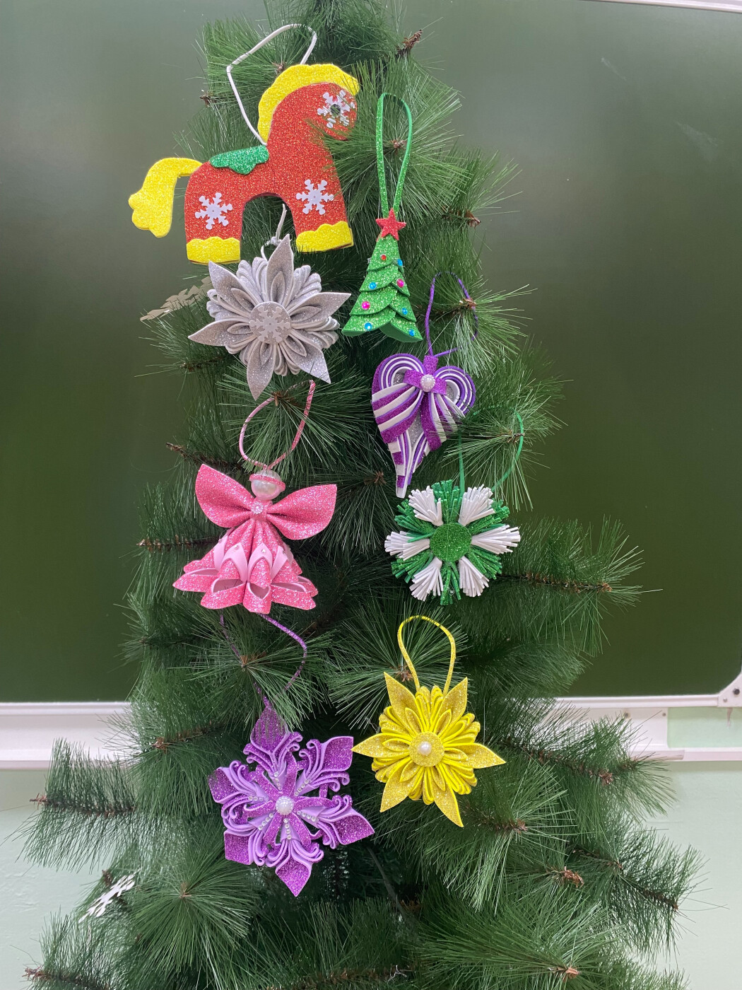 Новогодние игрушки изготовлены из фоамирана. Они не только украшают елку, но и радуют глаз своим разнообразием форм.