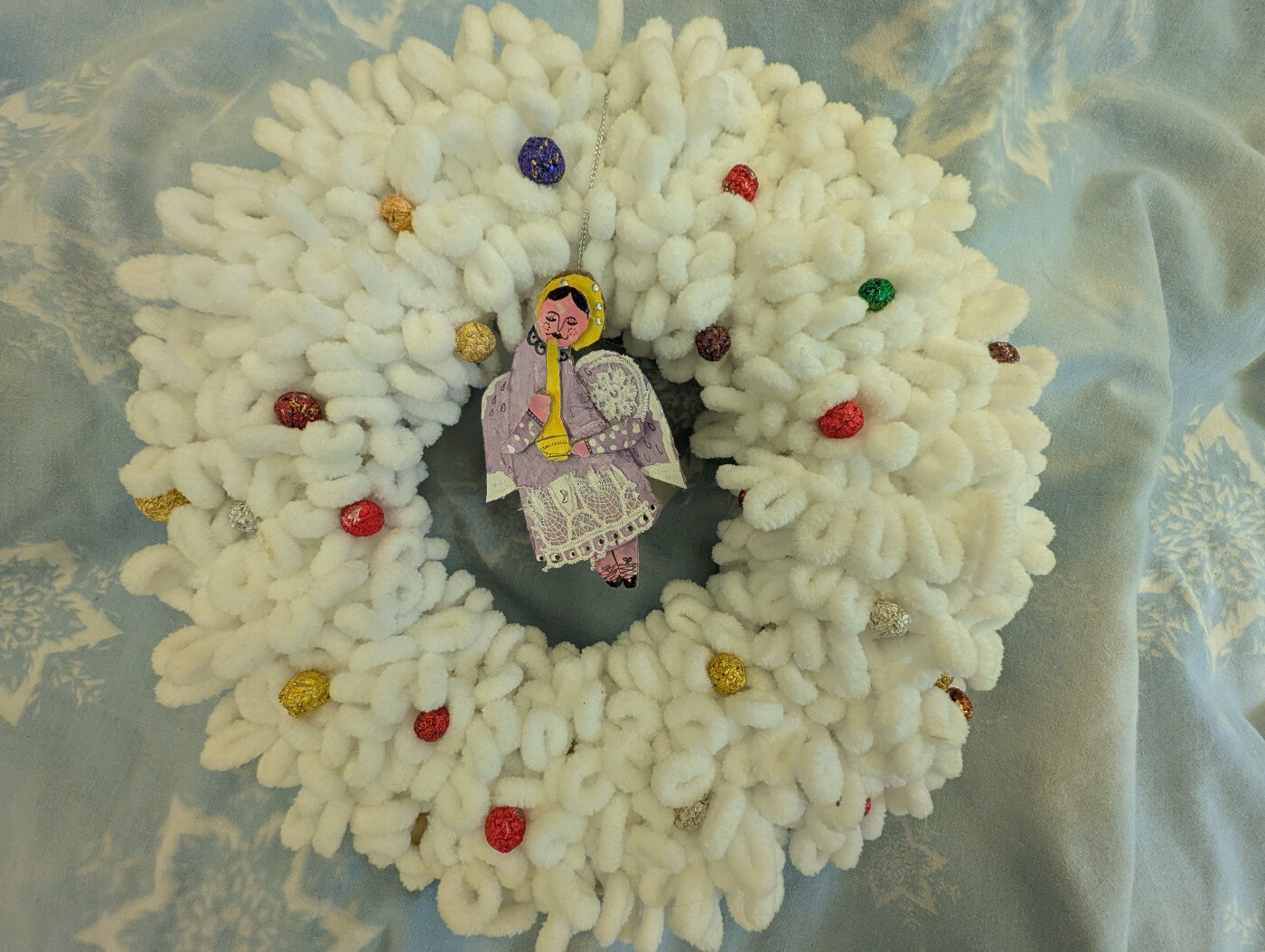 Рождественский венок «Белоснежная сказка» украшен нежным ангелом, олицетворяющим тепло и защиту зимней ночи. Идеальное украшение для чудесного праздника :)