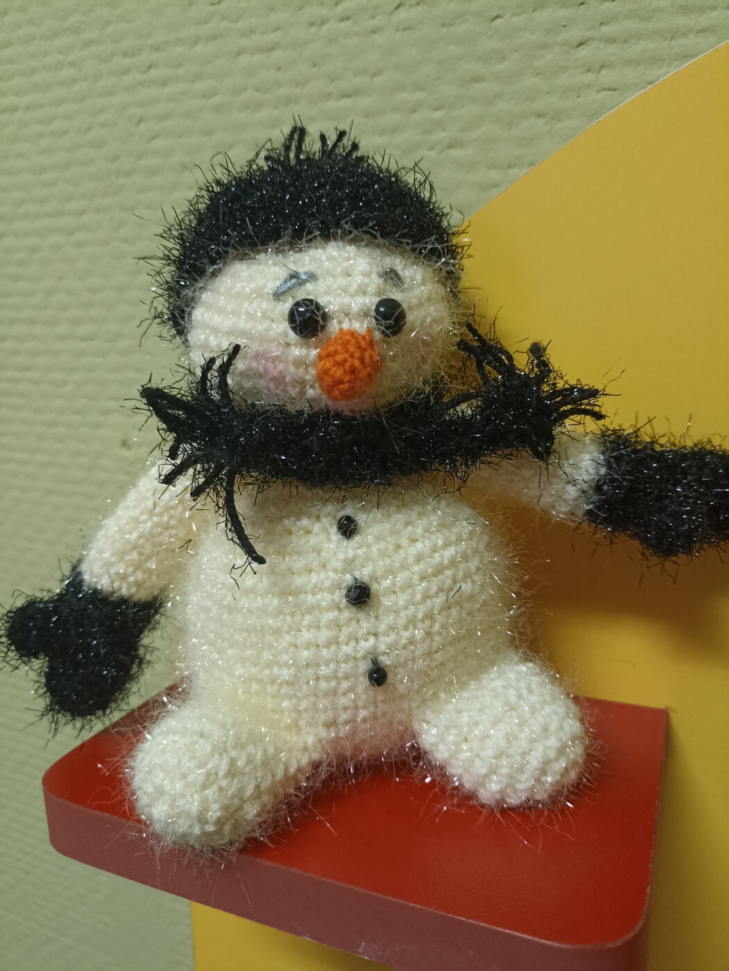 Этот маленький снеговичок, связанный с любовью крючком, – символ зимней сказки и рождественских чудес. Он согреет вас теплом пряжи и принесет в ваш дом атмосферу волшебства и уюта, напоминая о радости первых снежинок.".