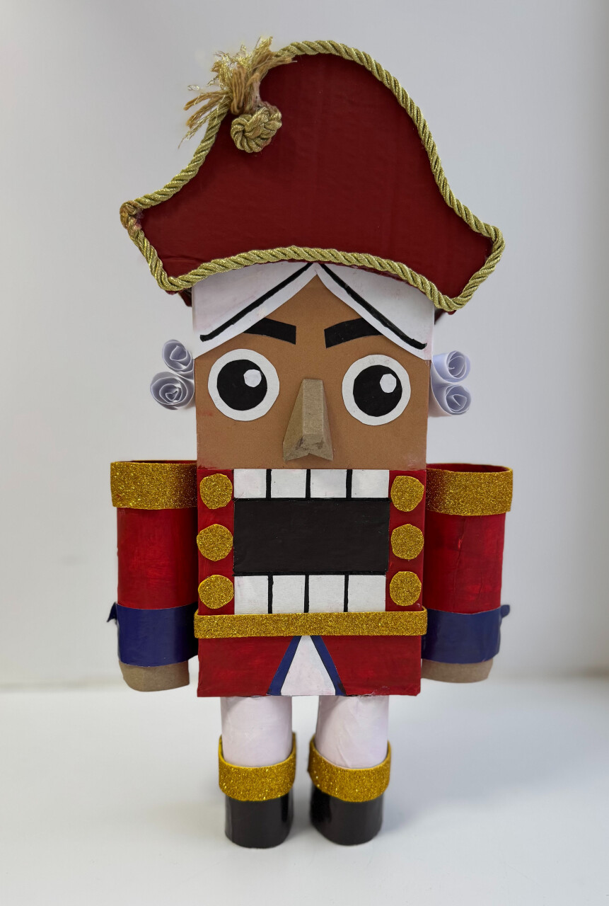 Работа выполнена ребенком, имеющим статус инвалида. Ёлочная игрушка "Щелкунчик" изготовлена из бумаги, картона и ткани