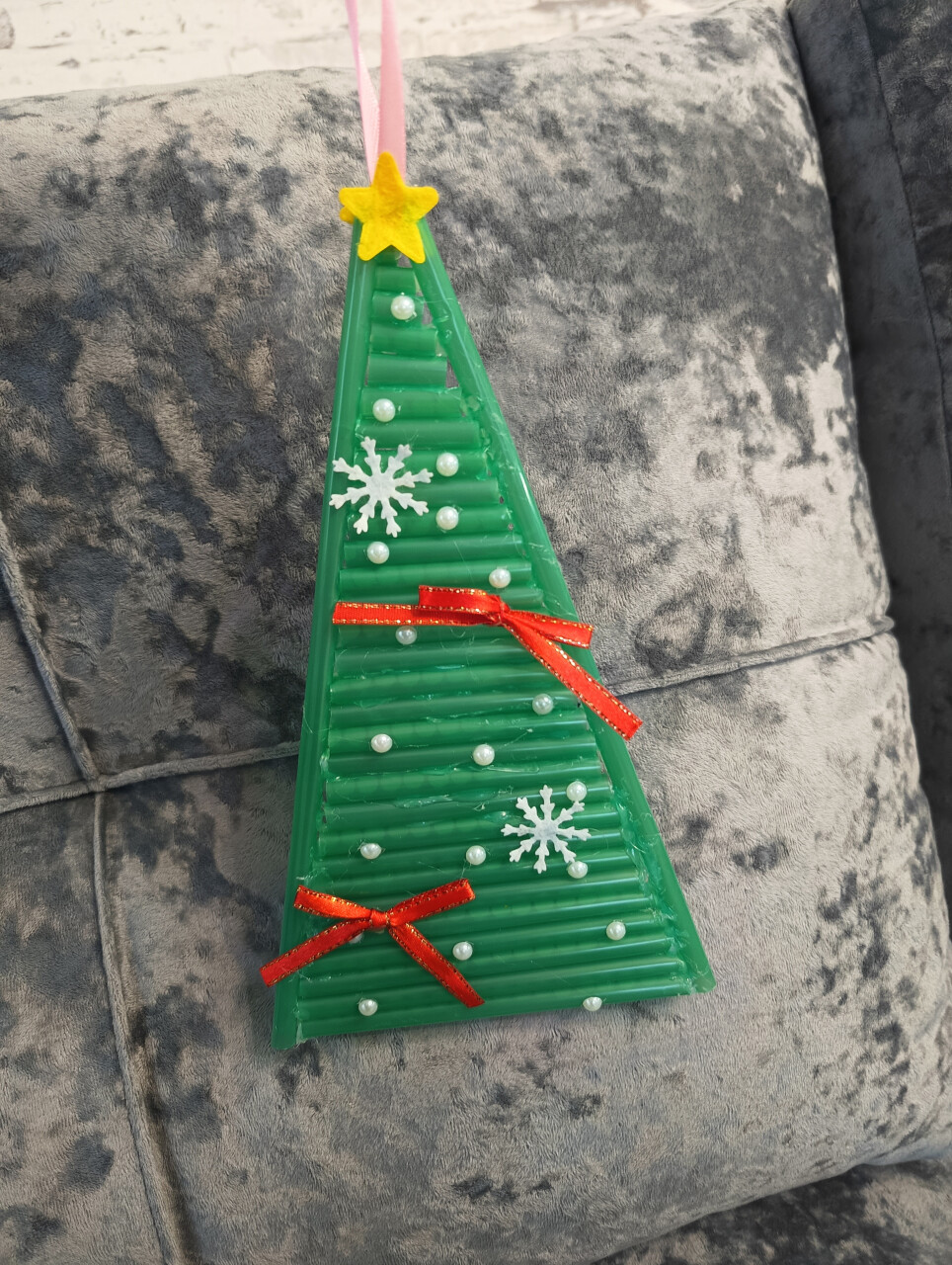 Игрушка выполнена из трубочек. Повторное использование отработанного материала. Такие игрушки можно использовать ежегодно для оформления елки на Новый Год.