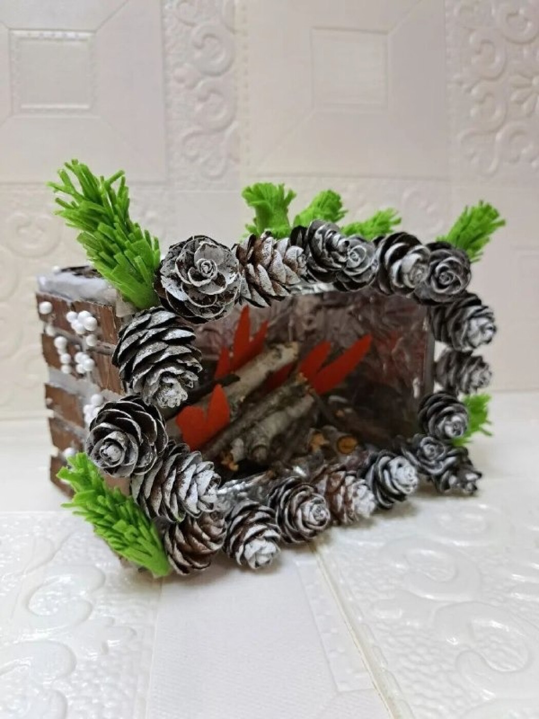 Владимирова Светлана, 9 лет. Новогодний камин. Картон, природные материалы. Преподаватель Федулова Татьяна Александровна