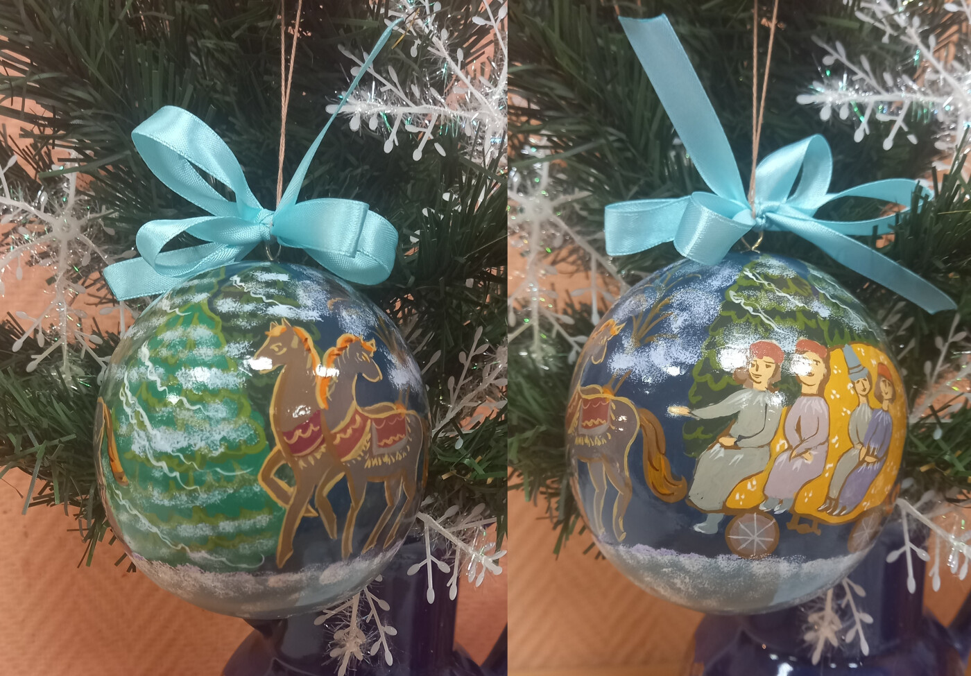 Работа выполнена темперными красками по деревянной заготовке, размер шара 10 см. По мотивам городецкой росписи. МУДО "Обуховская ДШИ" преподаватель Старовойт Ирина Витальевна