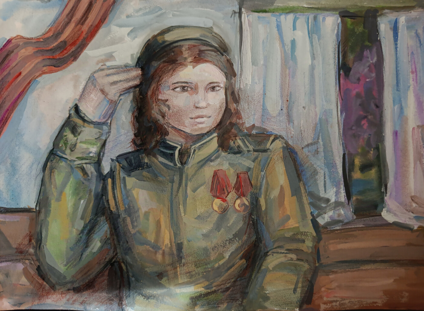 Моя бабушка - большая гордость нашей семьи. Она участник ВОВ. Воевала в зенитных войсках и шила кители на парад Победы в Москве