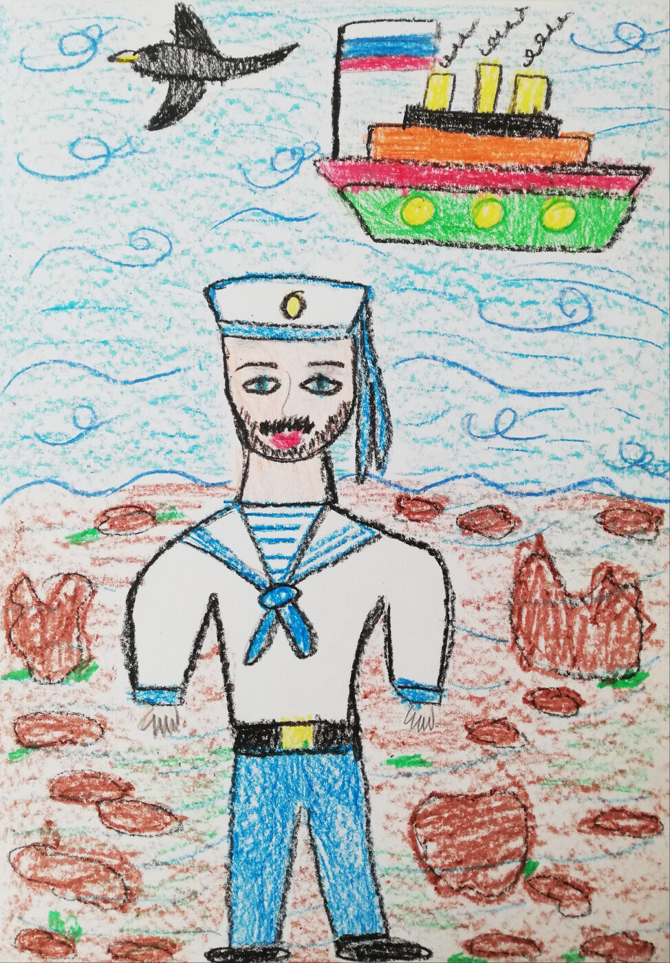 Работа выполнена восковыми мелками.