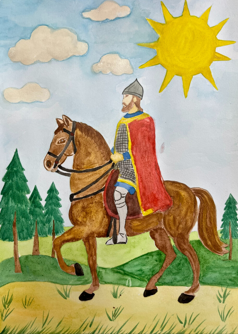Я нарисовал Александра Невского, потому что он является одним из самых известных и уважаемых исторических персонажей в России. Он прославился своими победами над шведами и немцами в XIII веке, защищая русские земли. Его образ часто ассоциируется с мужеством, силой и защитой Родины, а также символизирует героизм и отвагу.