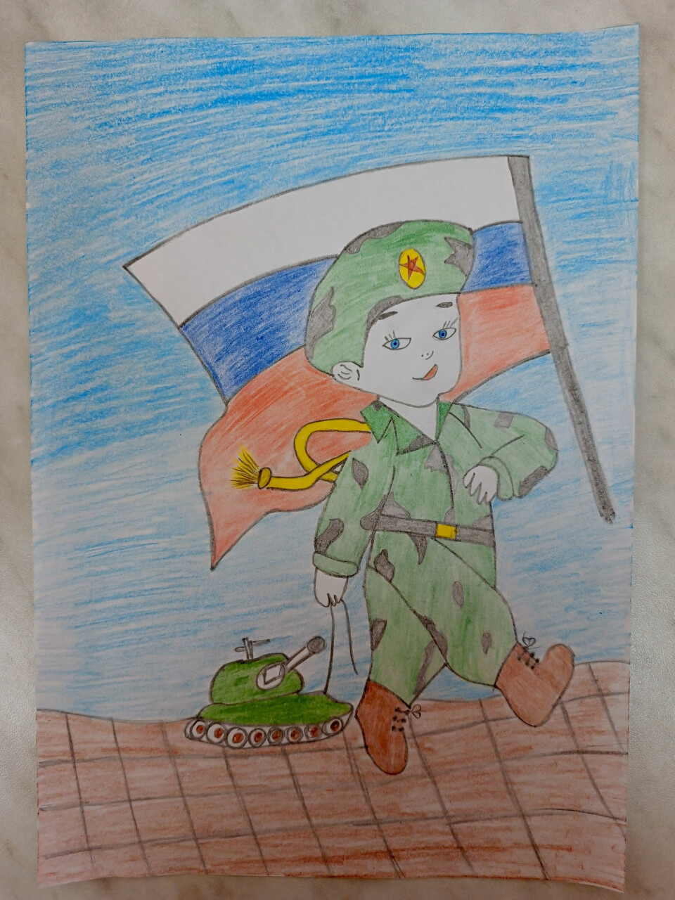 Рисунок выполнен цветными карандашами