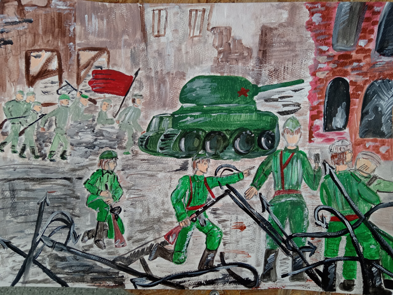В этом рисунке отображены защитники во время Великой Отечественной войны штурм!