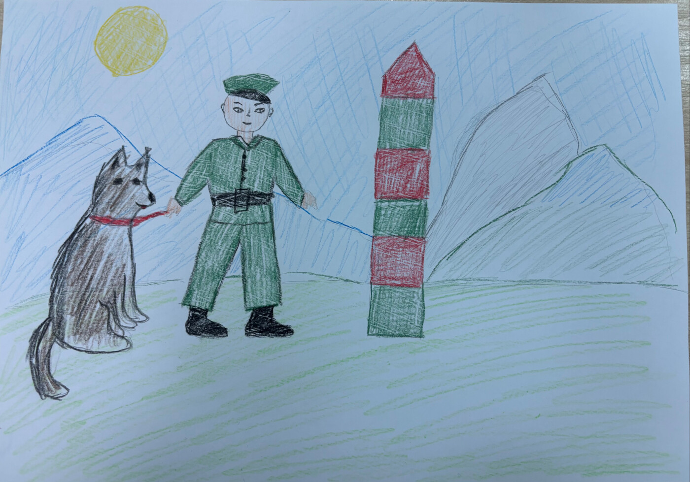 На рисунке изображен моя дядя, участник СВО, находящийся сейчас на передовой и получивший медаль за воинскую доблесть