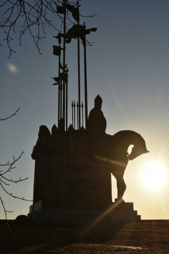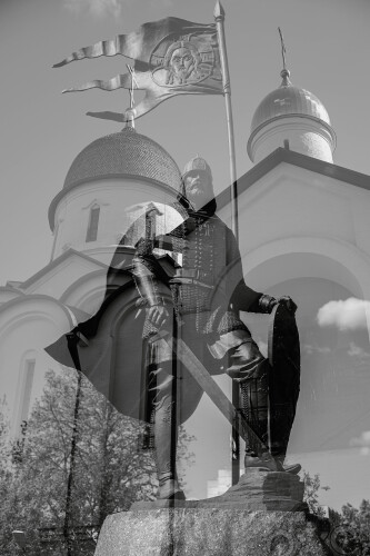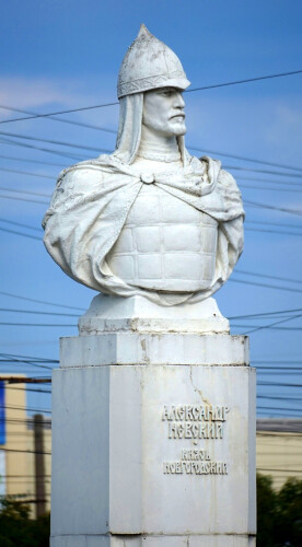 Витебск, Площадь Тысячелетия, съёмка выполнена из теплового аэростата (привязной полёт) в 2012 году. На переднем плане купол Храма святого благоверного князя Александра Невского. Храм построен в ретроспективном стиле, сочетая в себе традиции белорусского и северного деревянного зодчества (дань памяти Новгородскому периоду жизни св. Александра Невского). Потомок св. Ольги св. князь Александр бывал в Витебске. Он был женат на витебской княжне Александре Брячиславовне. В 1245 г. сам князь гостил в Витебске с сыном Василием. Выступив отсюда в поход, он одержал под Усвятами очередную победу над литовцами, которые в те времена угрожали и Полоцкому княжеству.