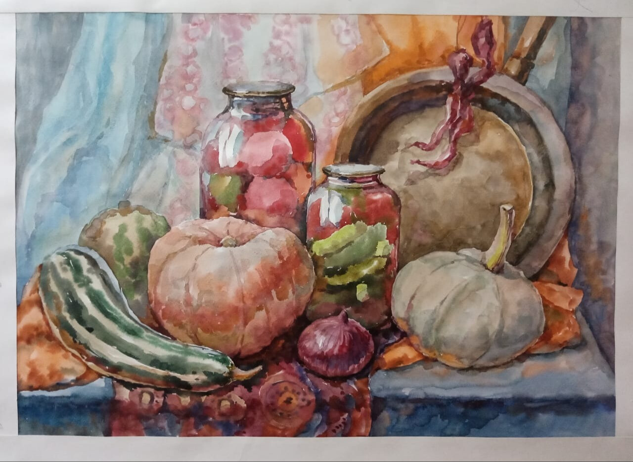 Осеннее время всегда ассоциируется у меня с бабушкой, ее кропотливым летним трудом и вкусными осенними результатами. Поэтому мне захотелось запечатлеть труд моей любимой бабушки!
