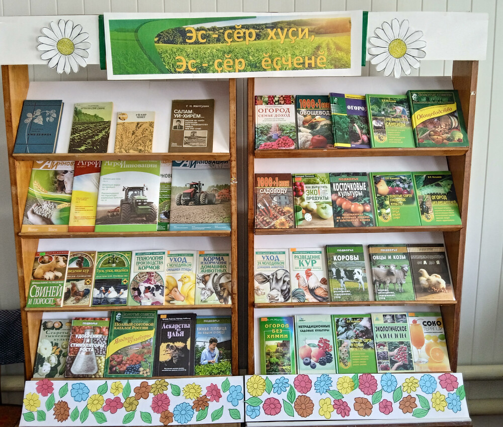 В рамках Единого дня аграрных знаний и республиканского проекта "Сила села - ял хӑвачӗ", организованной Национальной библиотекой Чувашской Республики, в Чувашско-Сорминской сельской библиотеке МБУК «ЦБС» Аликовского муниципального округа Чувашской Республики оформлены и представлены читателям книжные выставки: «Сила села-Ял хᾰвачě», «Эс - çĕр хуçи, эс – çĕр ĕçченĕ», была представлена выставка с обзором литературы «Ĕç çыннине мухтав», проведён обзор книг «Новая литература по сельскому хозяйству» и открытый просмотр литературы «Притяжение полей – притяжение земли».