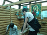 тумтирне тăхăнăн. Аçу çăпатине хывса