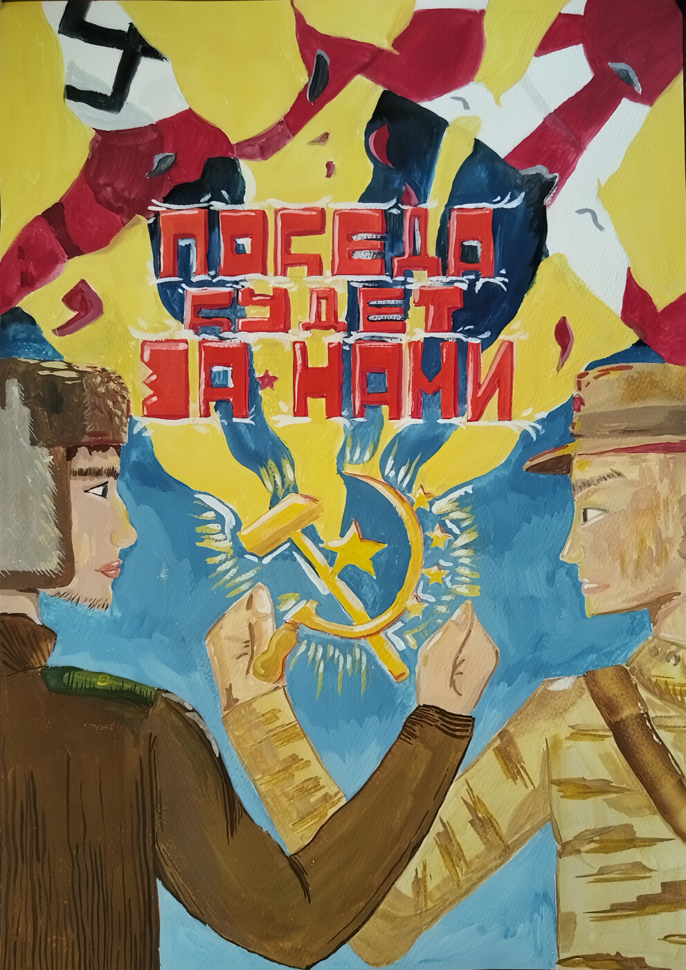 Примечание: текст на работе - Победа будет за нами