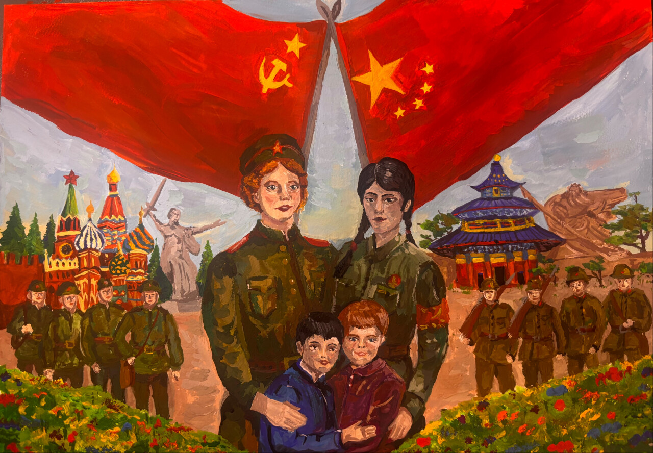 - В своей работе я хотела показать, то самое единство двух народов. Дать всем понять, что несмотря на различие традиционных ценностей, обычаев, внешнего вида наши страны все равно смогли помочь друг другу в столь сложную минуту.
