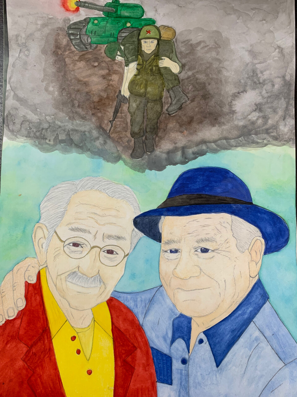 ▌ На рисунке два друга, два солдата, которые пронесли через много десятков лет свою дружбу.