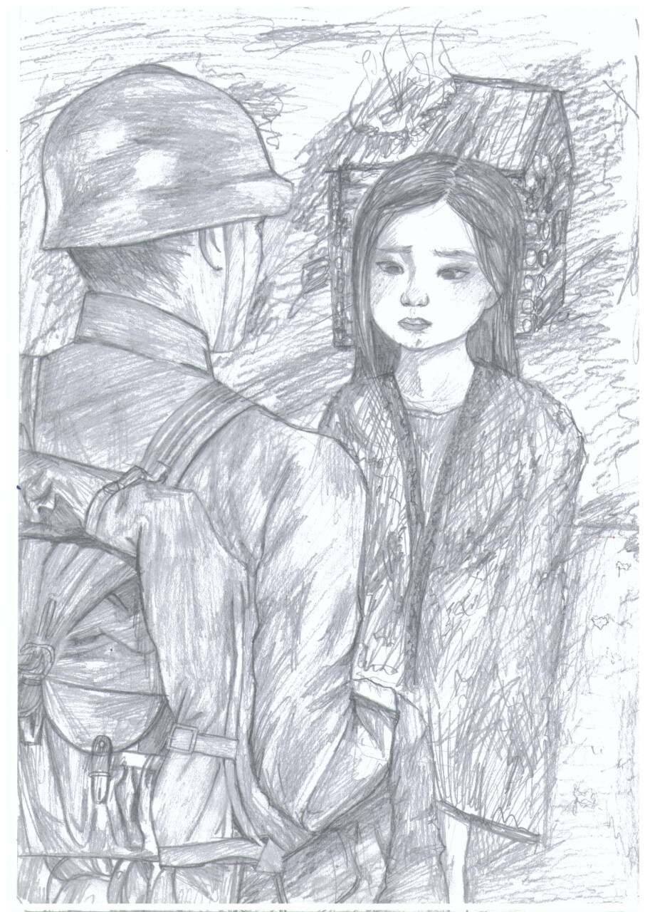 Во второй мировой войне Китай и Россия поддержали друг друга.На данном рисунке дом плачущей девочки, который подожгли враги.Русский солдат спас ее .Он помог ей выжить. Пусть память об этой страшной войне будет в сердцах людей, и пусть отношение России с Китаем будет только укрепляться.