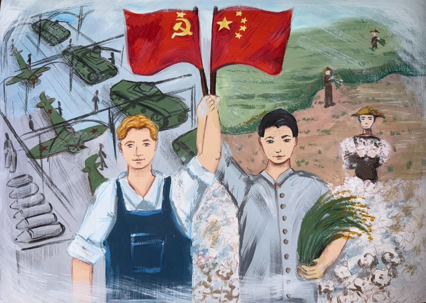 Общими силами, не только на фронте, но и в тылу, Китай и СССР рука об руку помогая друг к другу к общей Победе! Каждый китайский крестьянин и советский рабочий, собирая рис или работая на заводе, приближали ВЕЛИКУЮ ПОБЕДУ! ВМЕСТЕ МЫ СИЛА!!!
