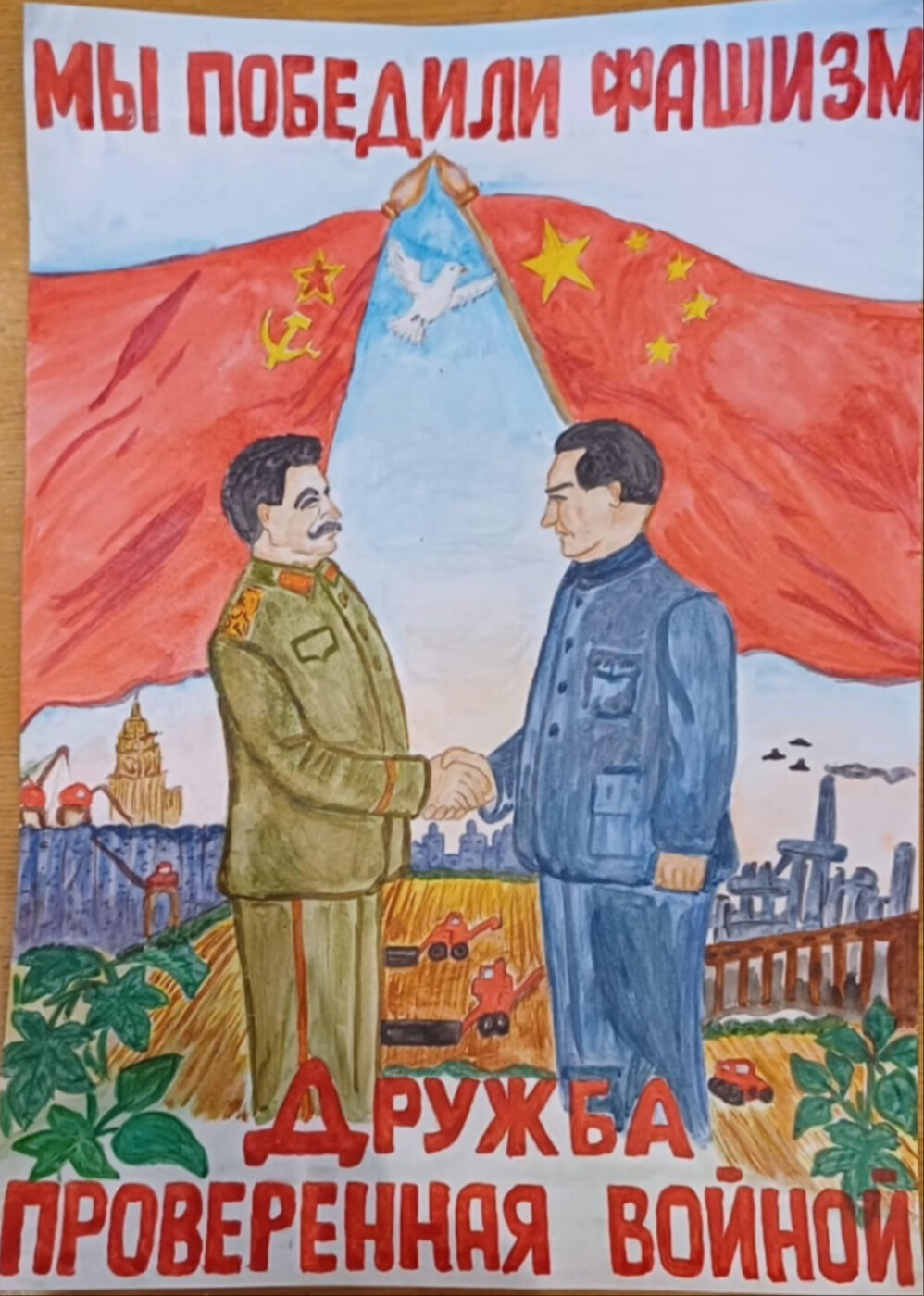 СССР и Китай заложили глубокую боевую дружбу. Китай сдержал японские войска, не дав открыть второй фронт на востоке СССР. Страны поддерживали друг друга: СССР поставлял Китаю вооружение, а Китай снабжал Советский Союз стратегическим сырьем. Так Советский союз и Китай победили фашизм.