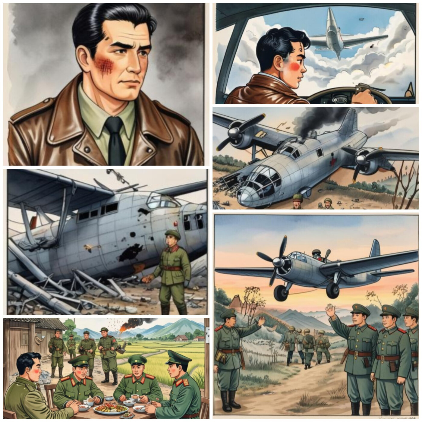 Представляем вашему вниманию комикс "Спасение над Ханькоу", созданный в формате акварельной живописи с использованием нейросети Кандинский от Сбер.