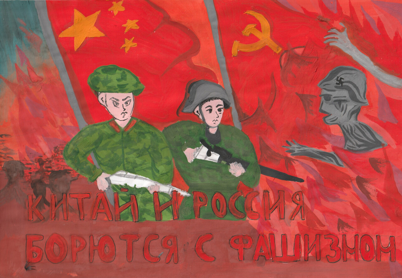 Свою работу я посвещаю дружбе между Россией и Китаем. В современном мире, где вызовы безопасности становятся все более комплексными, наши страны выступают важными партнерами в борьбе с угрозами фашизма и милитаризма. Эти две державы, обладающие богатой историей и значительным влиянием на международной арене, разделяют общую позицию по ряду ключевых вопросов, направленных на поддержание мира и стабильности. Победа над фашизмом и милитаризмом – это не просто исторический факт, это урок, который мы не должны забывать. Сегодня, когда мир сталкивается с новыми вызовами и угрозами, важно помнить о том, что объединение усилий, взаимопонимание и солидарность являются ключом к преодолению любых трудностей.