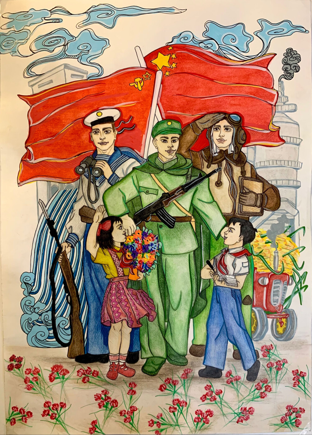 Наши страны были союзниками в борьбе с нацизмом и японским милитаризмом и приняли на себя основной удар агрессоров. Они не просто выстояли в этой страшной схватке, но и одержали победу, освободили порабощенные народы, принесли планете мирную жизнь. В своей работе я изобразила воинов-победителей, одержавших победу над милитаристской Японией.