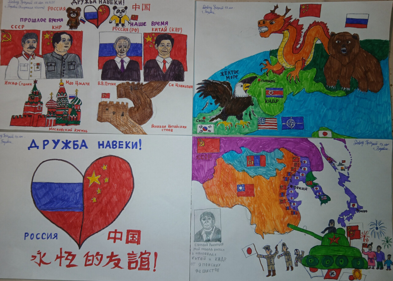 Россия и Китай - это две крупные страны, которых объединяет дружба, самобытность, независимость, общие интересы и ценности. Я заканчиваю в этом году школу и собираюсь поступать в Российскую государственную специализированную академию искусств (РГСАИ), где учатся вместе особенные студенты из России и Китая. Я хочу познакомиться и завести друзей из Китая, узнать их язык и культуру. У меня аутизм, но я хорошо учусь, окончил музыкальную и художественную школу, изучаю иностранные языки, занимаюсь спортом, принимаю участие в международных конкурсах и фестивалях. В 2024 году я стал участником Всемирного фестиваля молодёжи (ВФМ) в Сочи, где познакомился с ребятами из разных стран. Мой прадедушка, Ушнурцев Евгений Алексеевич, был участником разгрома японских милитаристов, в свои 19 лет командовал танком Т-34, прошёл с боями Манчжурию и Корею до Пхеньяна и был награждён орденом Отечественной войны, медалями "За освобождение Кореи" и "За победу над Японией". У России и Китая общее прошлое, настоящее и будущее.