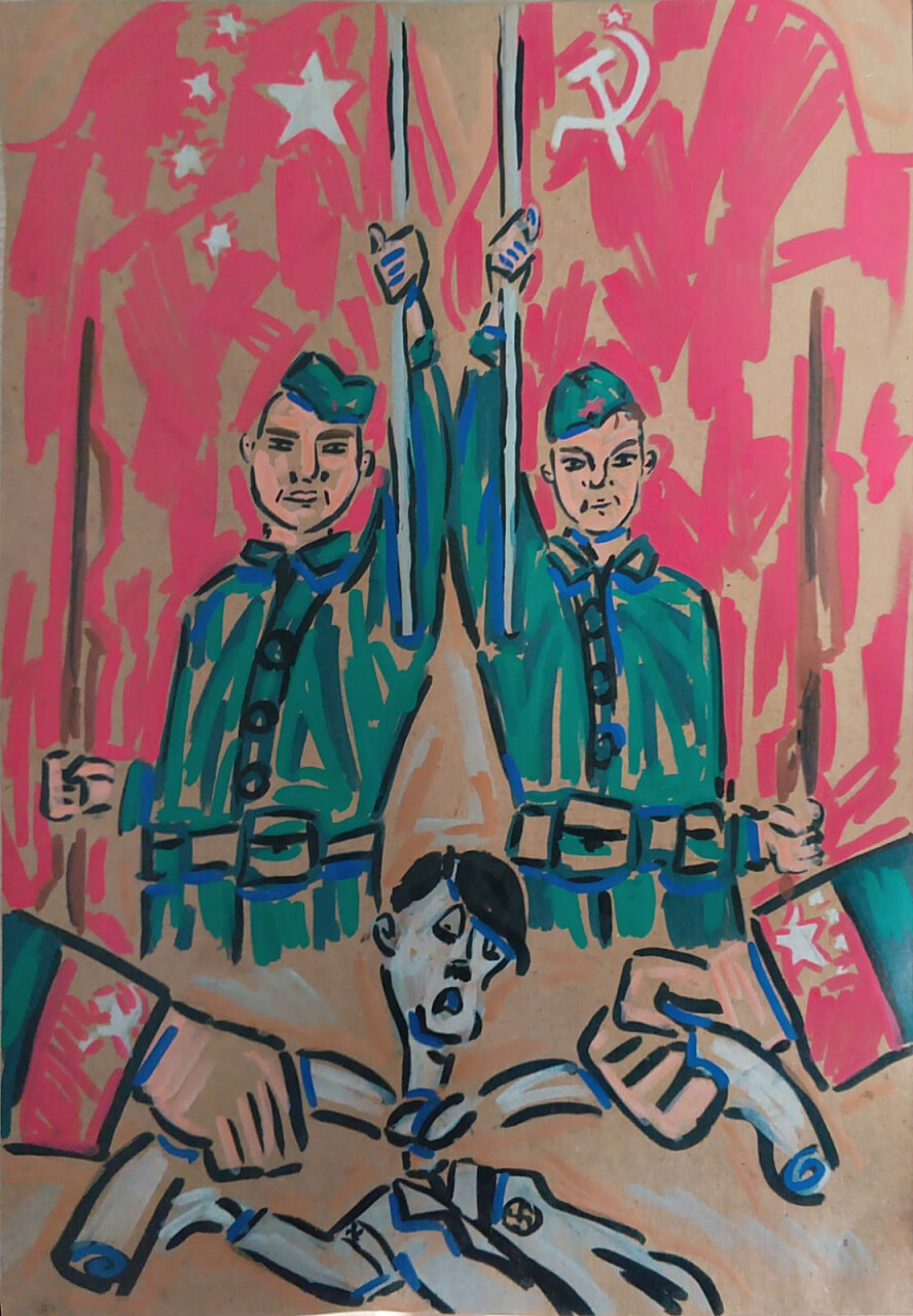 Данный рисунок олицетворяет героическую победу добра над злом, советского воина и китайского - победителя над фашизмом!