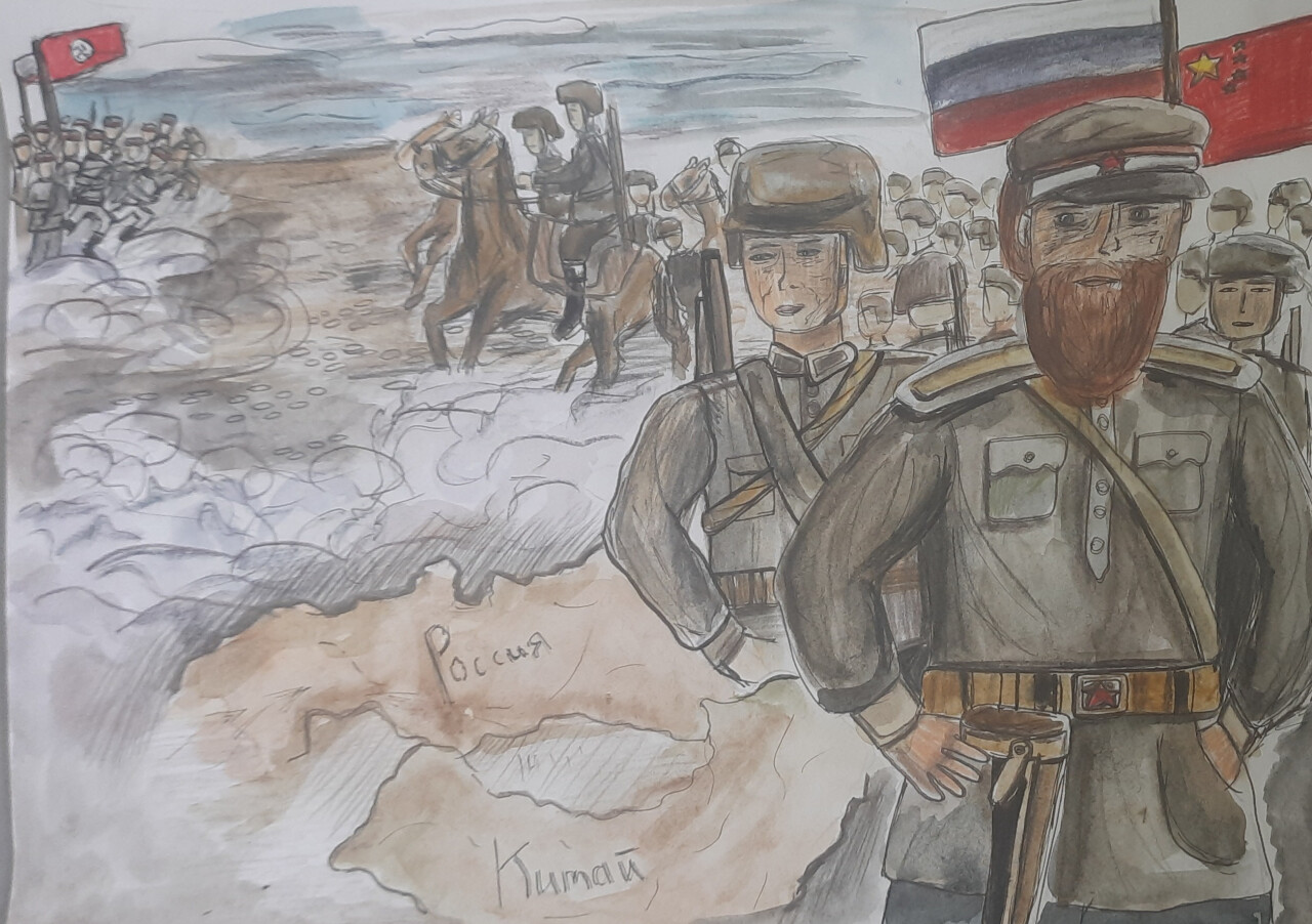 Я выбрала этот сюжет, потому что Китай и Россия были главными силами борьбы с немецким фашизмом в ходе Второй мировой войны. Именно эти державы понесли наибольшие людские потери и материальных ущерб. Россия и Китай оказывали друг другу поддержку, совместными усилиями приближая общую победу. Между ними сложились добрососедские отношения. Нужно гордиться такими странами! Только совместными усилиями можно было одержать победу!