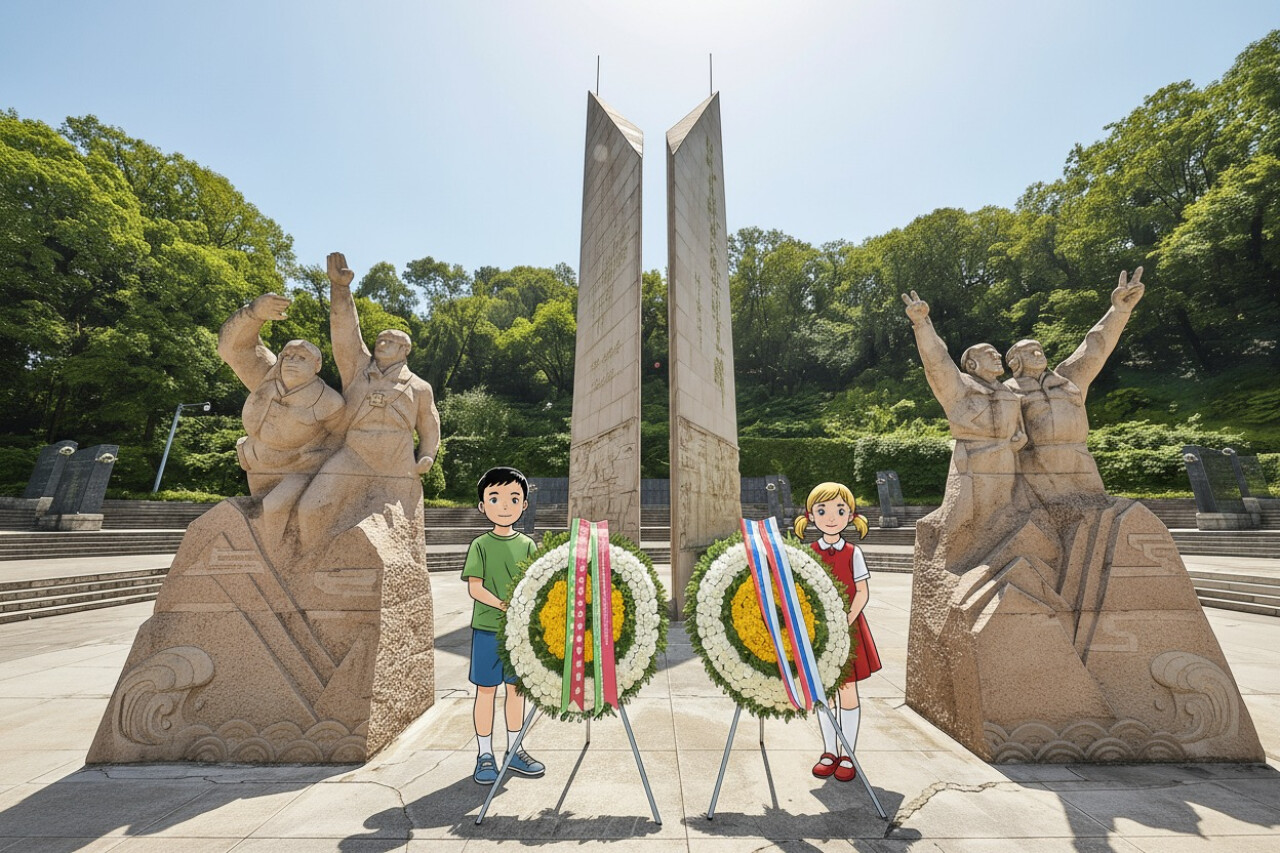Памятник героям в Нанкине, дети возлагают венки