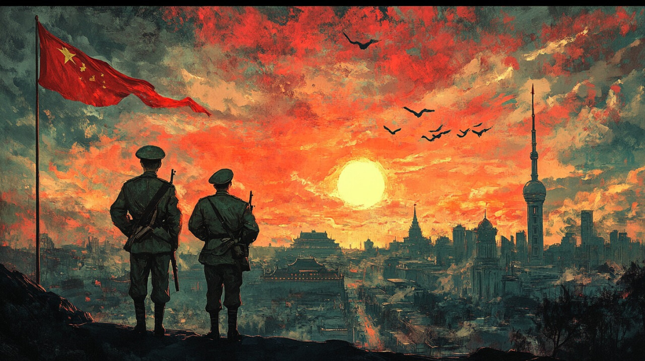 Данная работа посвящена историческому братству по оружию народов России и Китая в годы Второй мировой войны. Центральными образами являются солдаты двух стран, стоящие плечом к плечу, что символизирует их совместную борьбу против фашистского и милитаристского режимов. Развевающиеся знамёна России и КНР, сливающиеся в символ бесконечности, олицетворяют нерушимую связь и вечную память о подвиге. Тёмные тучи на заднем плане - это образ сил агрессии и угнетения, которые наши народы сумели преодолеть. Летящие журавли, являющиеся в обеих культурах символом мира, долголетия и света, несут весть о победе и чистом небе.