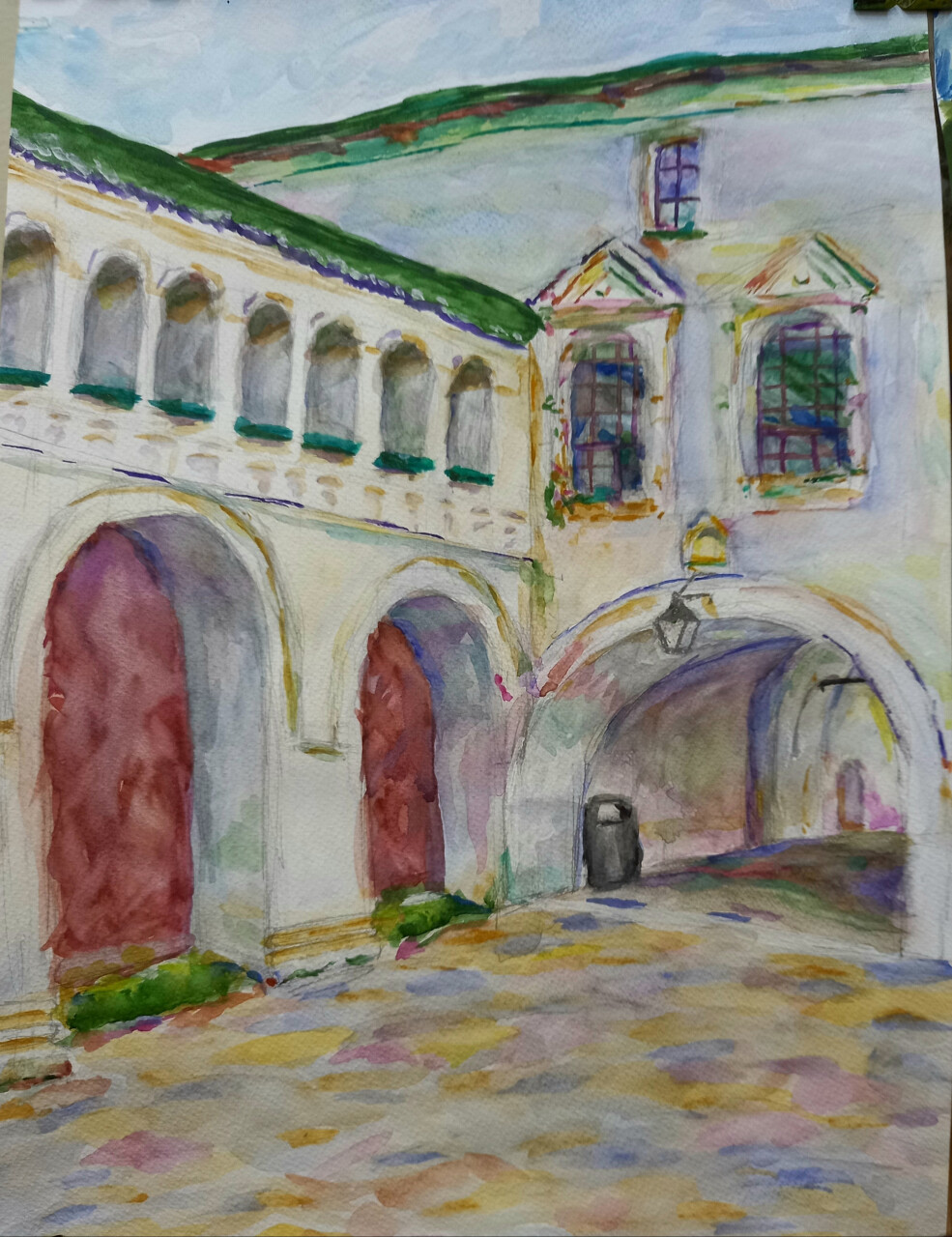 " Галерея у Архиреевых палат Суздальского Кремля", ф-А-3, бумага, акварель.