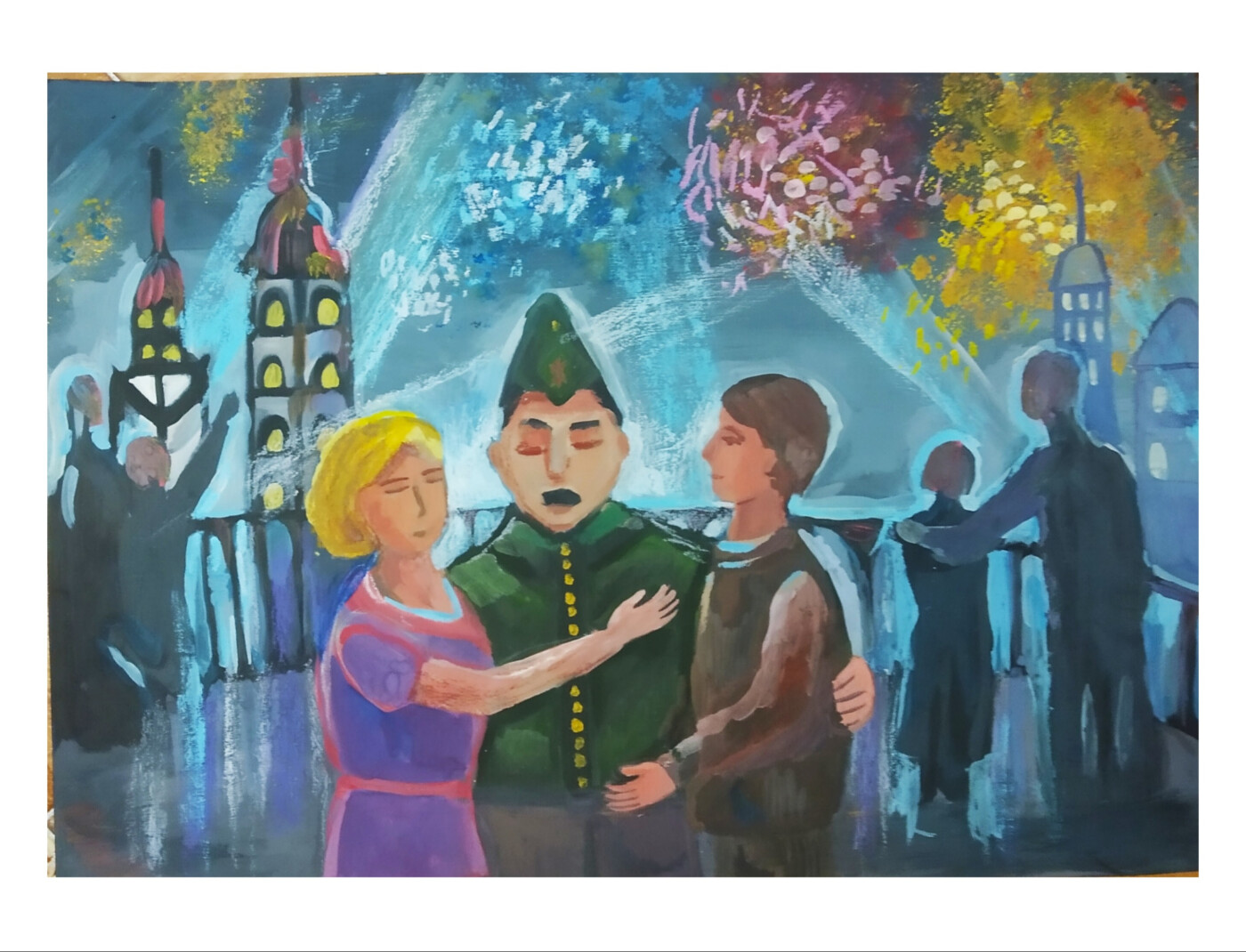 И в огнях победного салюта, искорки людских счастливых слёз...