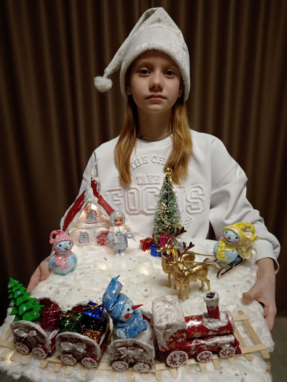 Мой сказочный поезд символизирует всем, что никогда не поздно вернуться в сказку. Главное, чтобы вера в чудо жила в каждом из нас. Моя поделка из ваты, картона, деревянных палочек и клея - доказательство того, что из обычных, повседневных вещей можно творить маленькие чудеса.