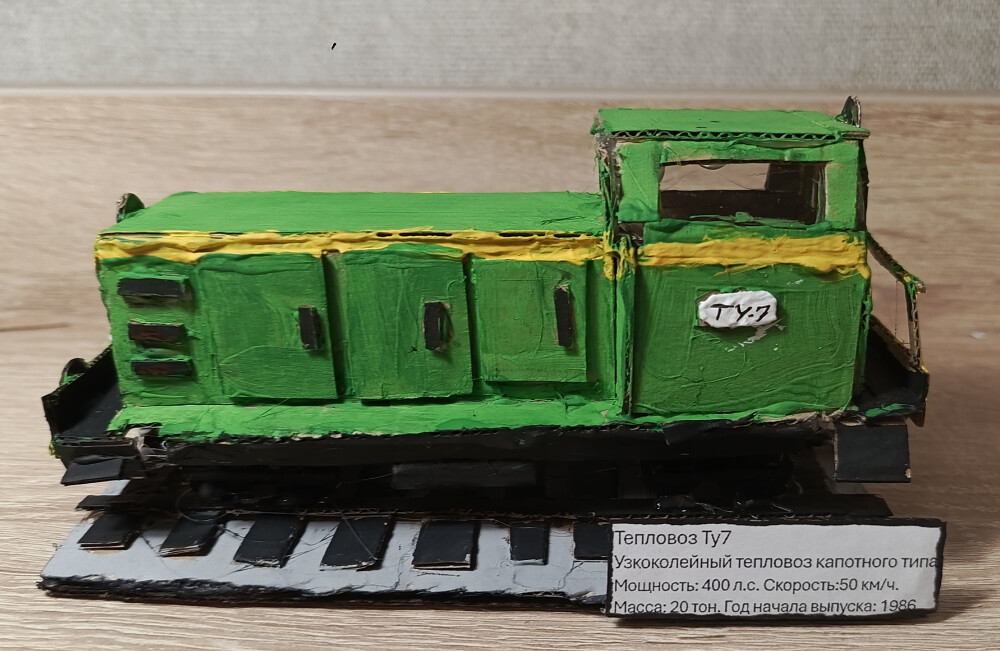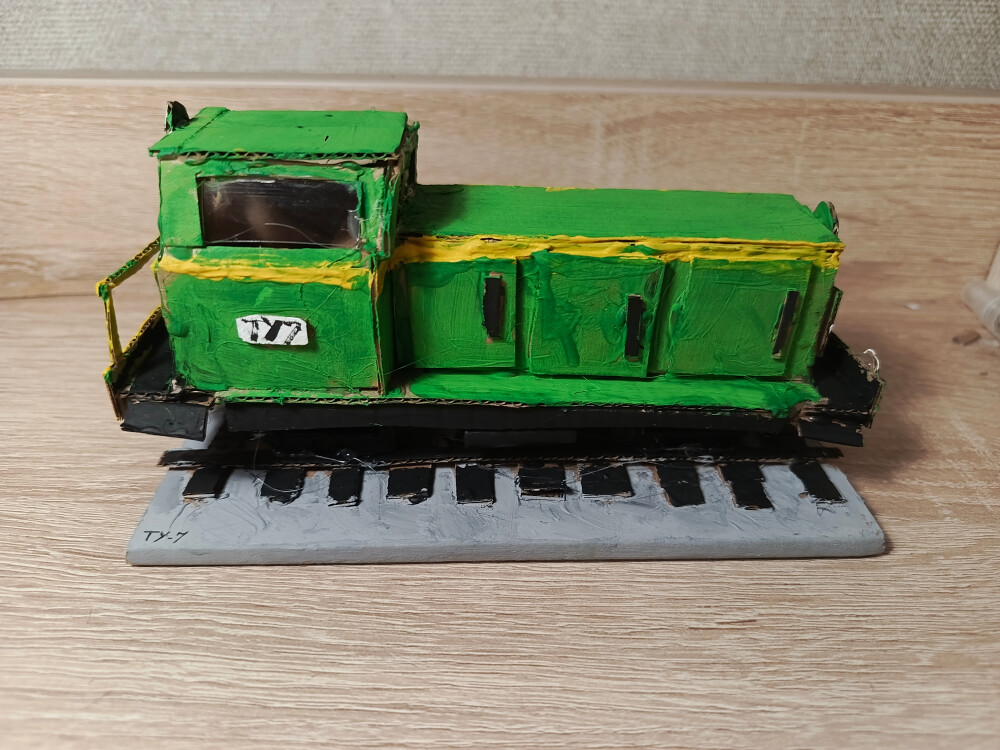 Узкоколейный тепловоз ТУ7, обычно такие тепловозы ездят на Детских Железная дорогах (ДЖД).
