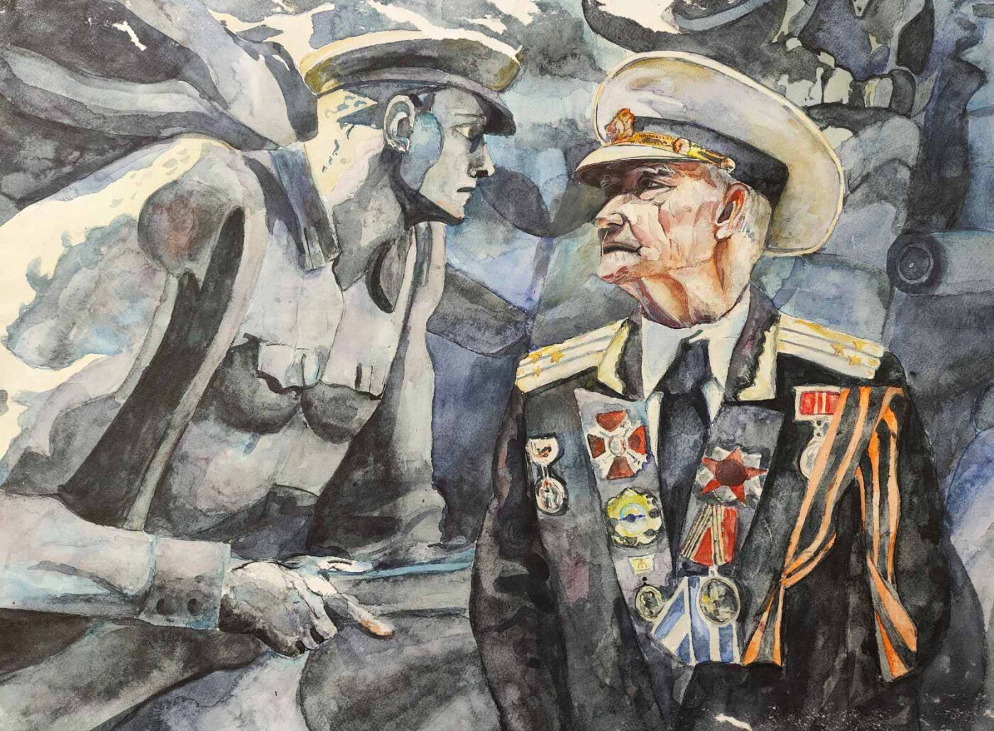 На моей работе изображен ветеран, пришедший почтить память сослуживцев погибших в Великой Отечественной войне 1941-1945 гг.