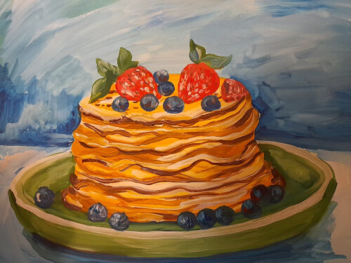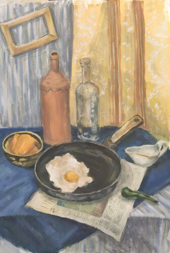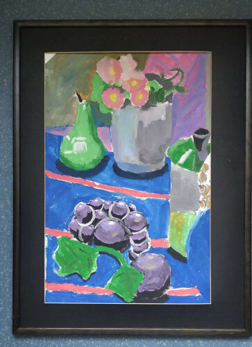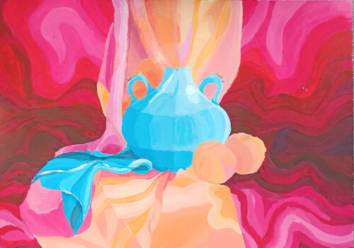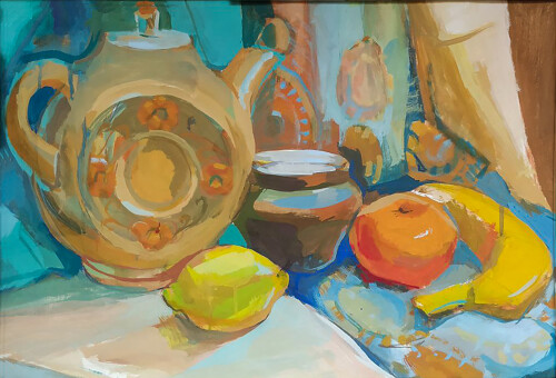 Натюрморт выполненный в контрастных цветах, в технике гуашь.