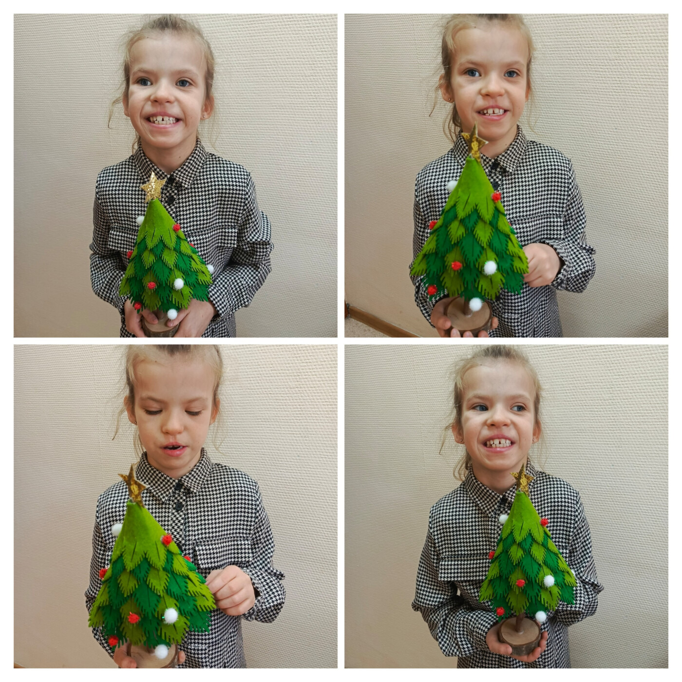 Ёлочка - красавица, выполнена работа из фетра, деревянной основы, клея и фурнитура (вспомогательные элементы украшения).