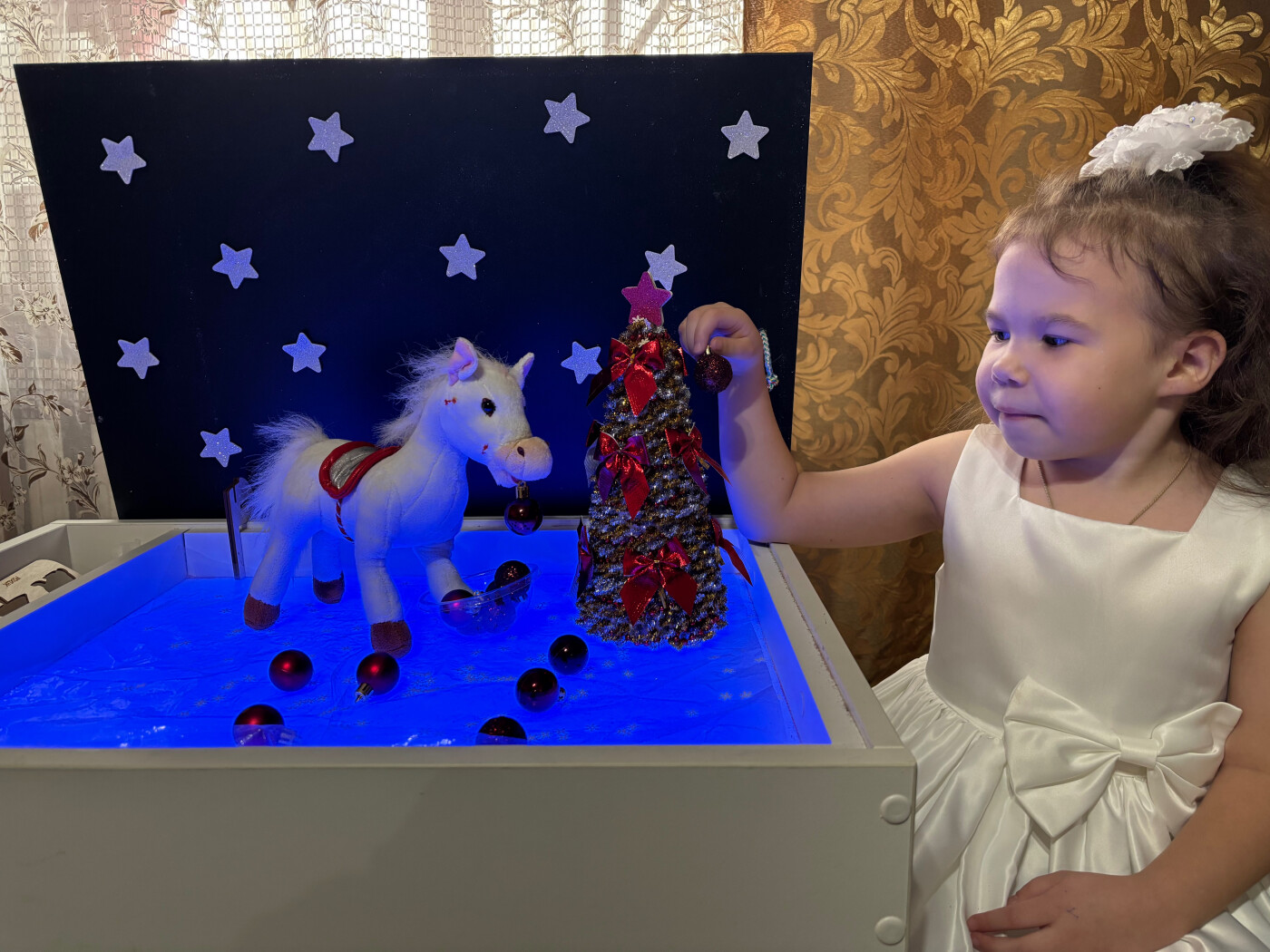 Наша ёлочка сделана из конуса ,синельная проволока, бантики и звёздочка. Так как наступает год лошади мы решили с дочкой добавить лошадь которая украшает ёлочку красными шариками.