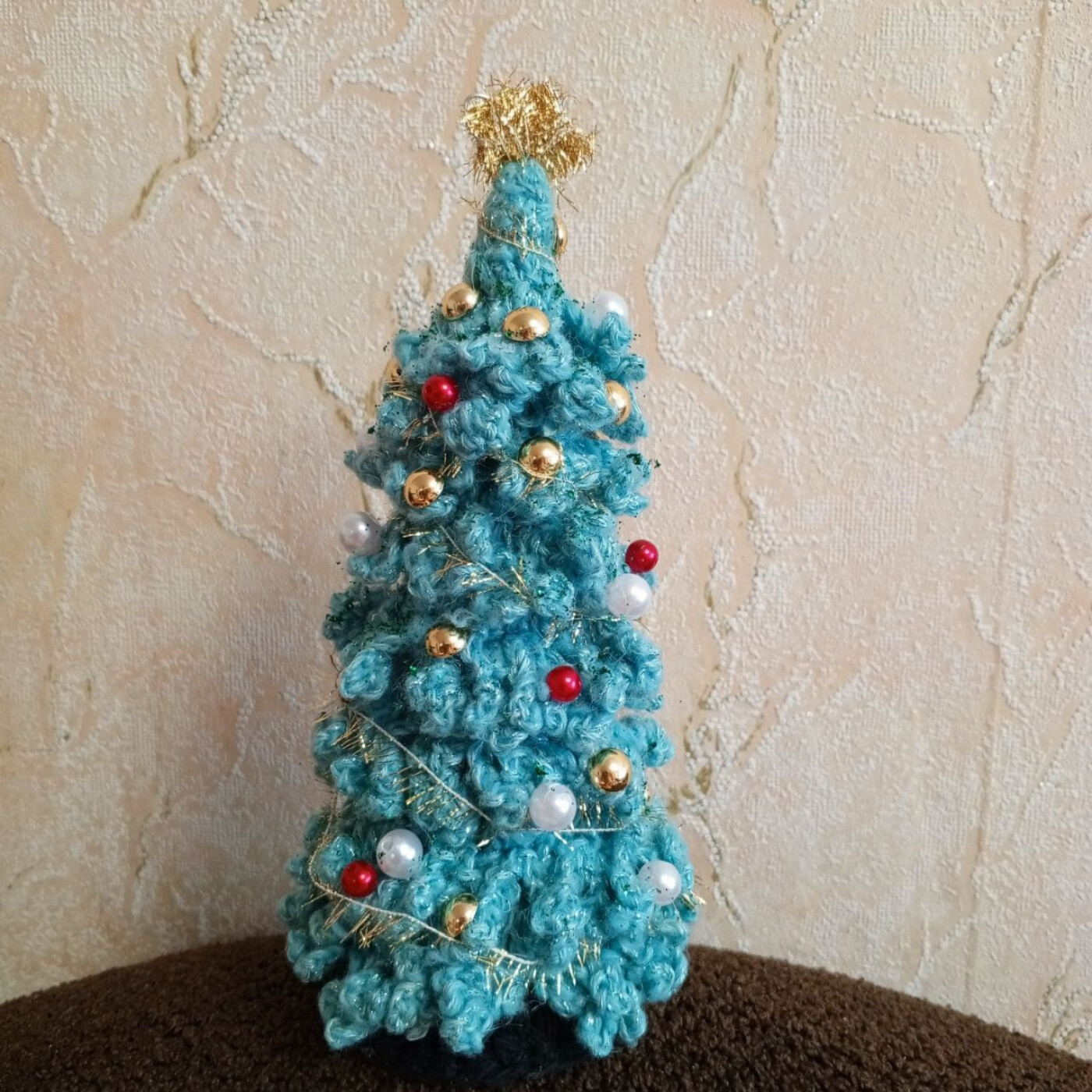 Ёлка выполнена из ниток, создаёт предпраздничное новогоднее настроение и радость.
