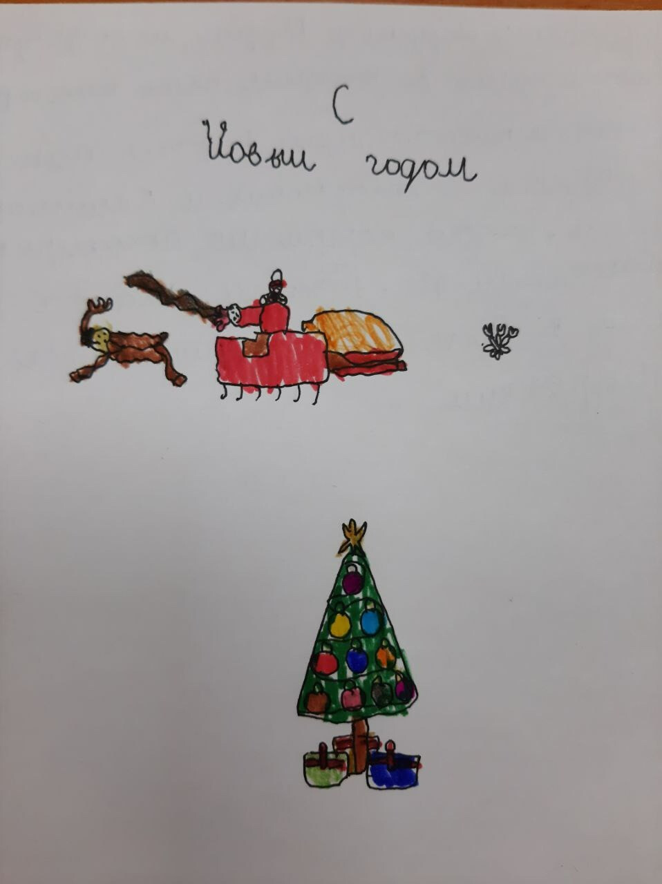 Работа выполнена ребенком с инвалидностью и с сопутсвующими заболеваниями. Сюжет выбран самостоятельно, работа полностью самостоятельная.