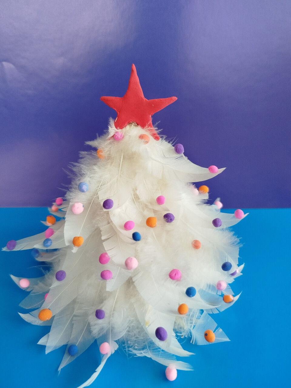 Работа выполнена из природного материала (из перьев) и воздушного пластилина
