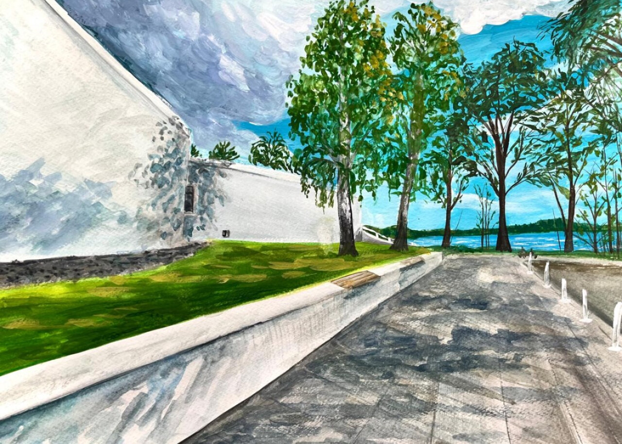 Данная работа была нарисована год назад. На ней изображен культурный центр "Волна" и природа города Выкса.