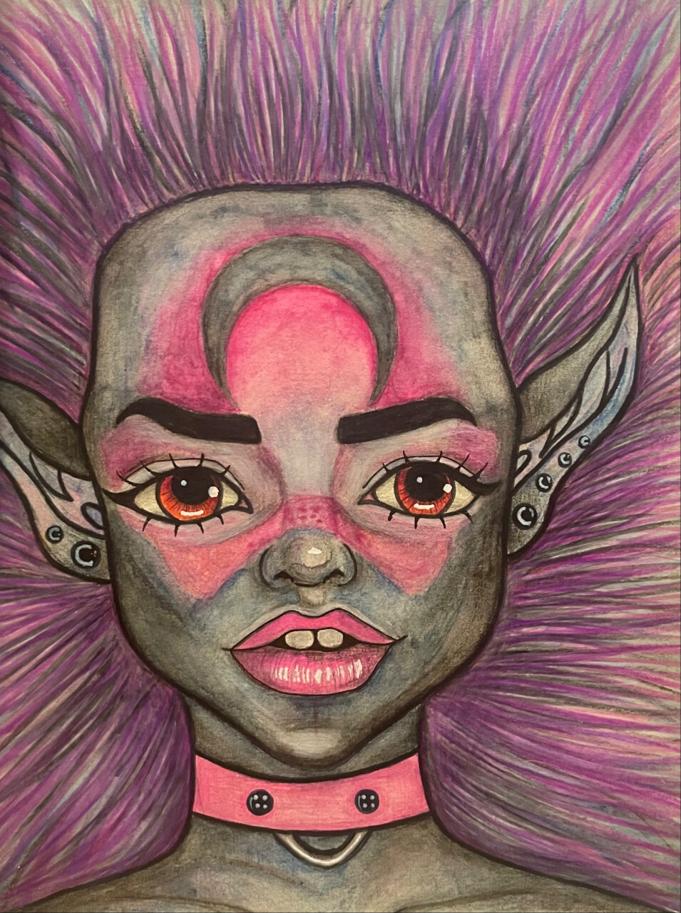 Луна всегда притягивала взгляды и сердца людей. И вот спустя 1000 лет на ее территории человечество обнаружила расу человекоподобных людей, под руководством королевы Луны. Именно ее портрет и показан в данной работе.