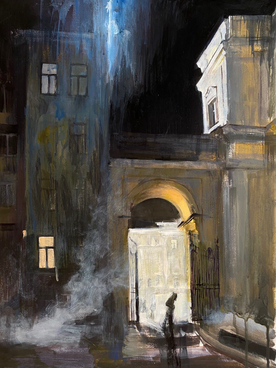На работе «Мгновение» я изобразила дворик Санкт-Петербурга зимой
