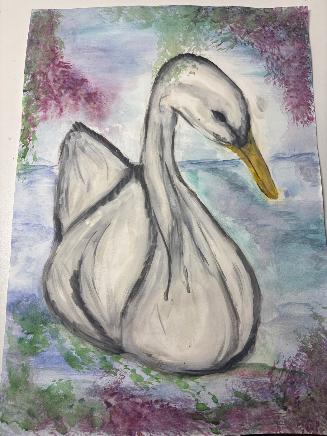 На рисунке я показала лебедя который спокойно плавает в пруду